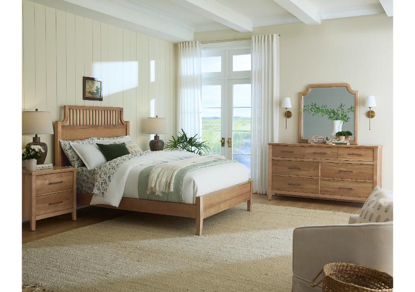 The Garden Bed with its tall; slatted headboard adds architecture and grace. It balances fresh; modern design with a Natural Maple finish; inviting relaxed; restorative nights. The bed's solid maple construction lets you rest easily; knowing that this charming piece will last for years.